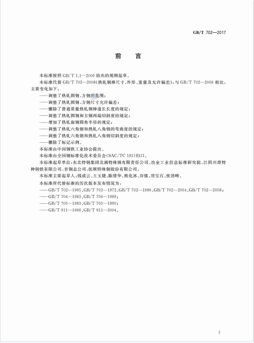 - 熱軋鋼棒尺寸、外形、重量及允許偏差GB/T702-2017 2022-04-22