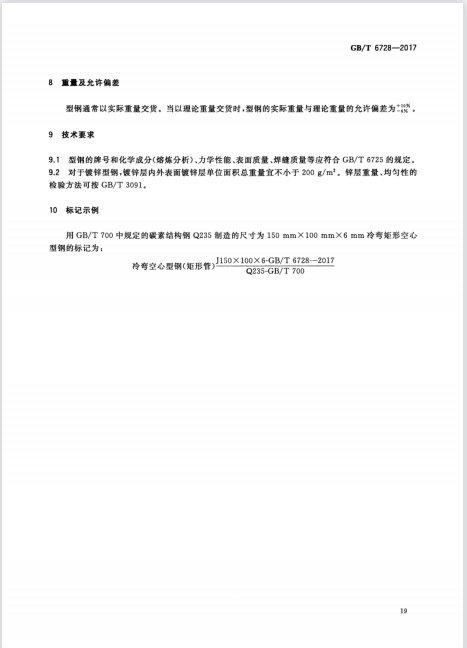 結構用冷彎空心型鋼GB/T6728*2017