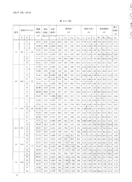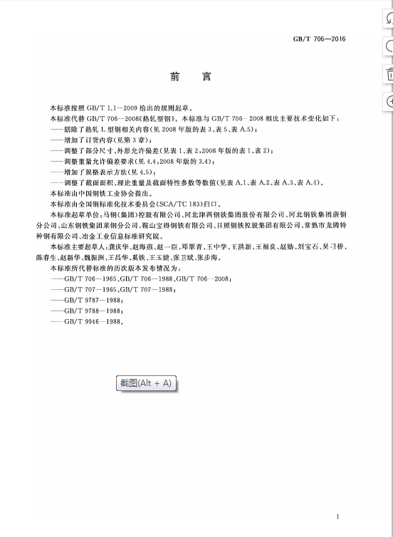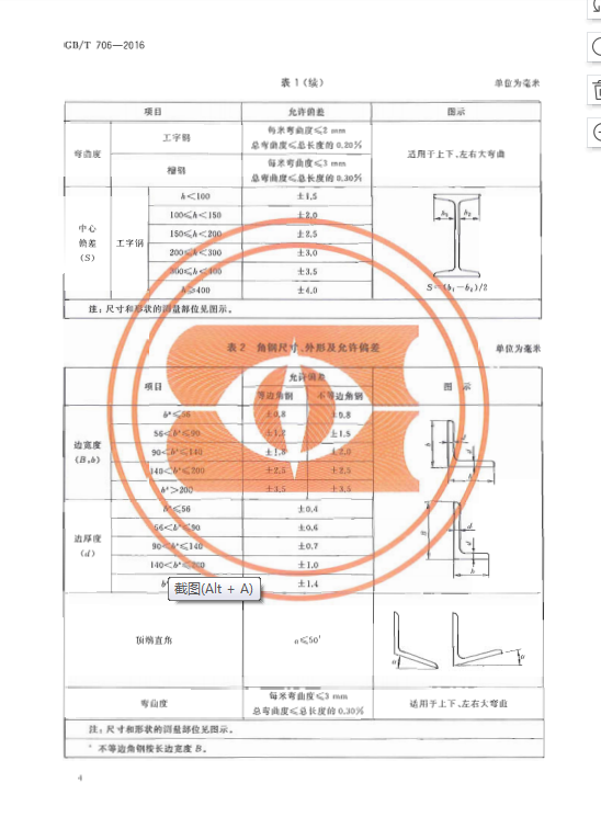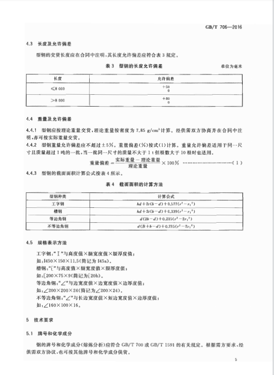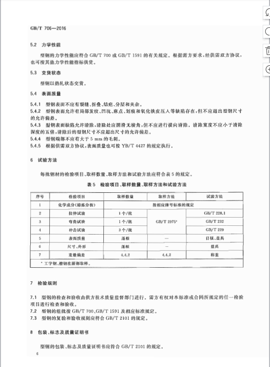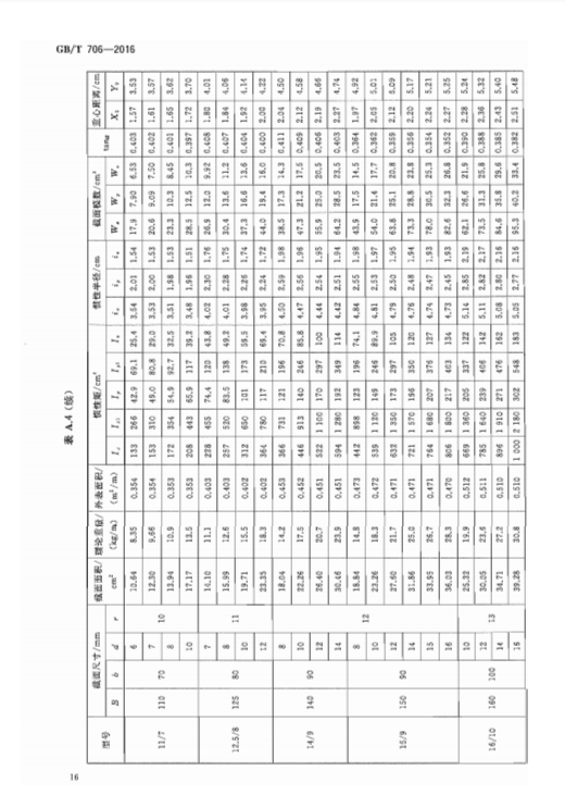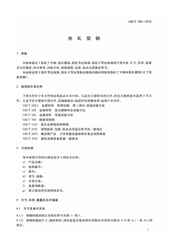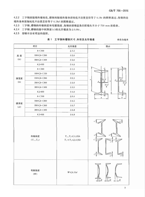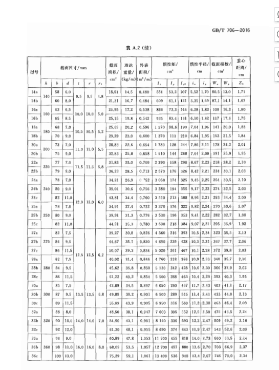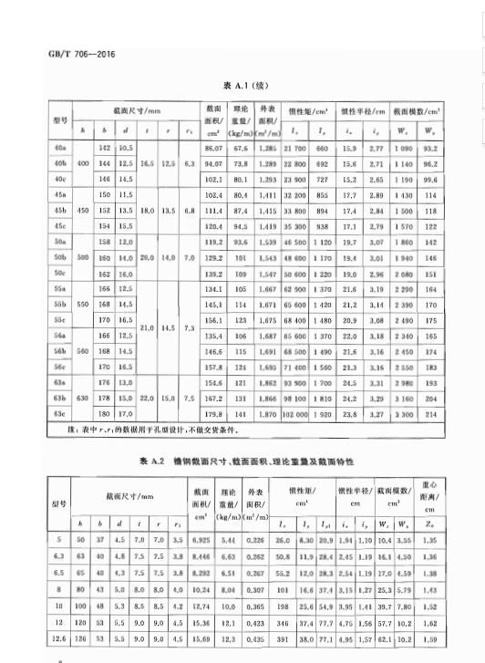 熱軋型鋼和T型鋼國標(biāo)GB/T706-2016