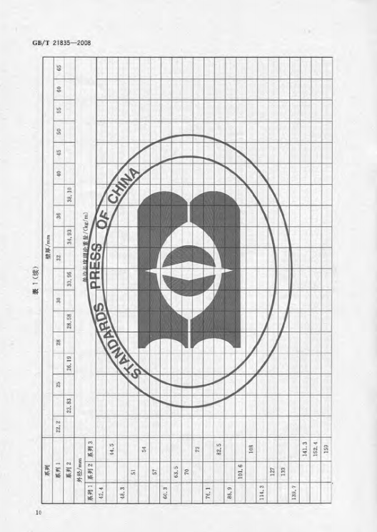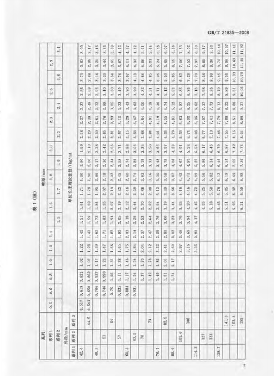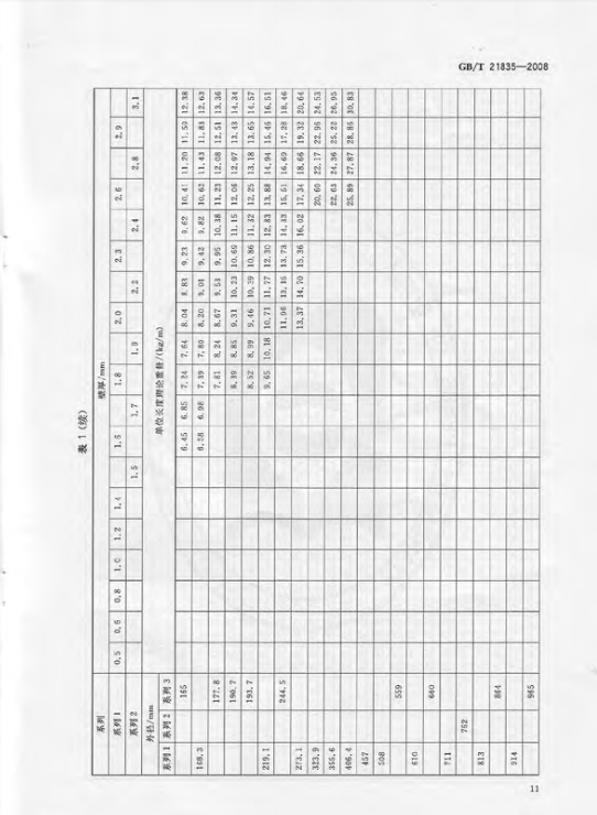 焊接鋼管尺寸及單位長度重量GB/T21835-2008