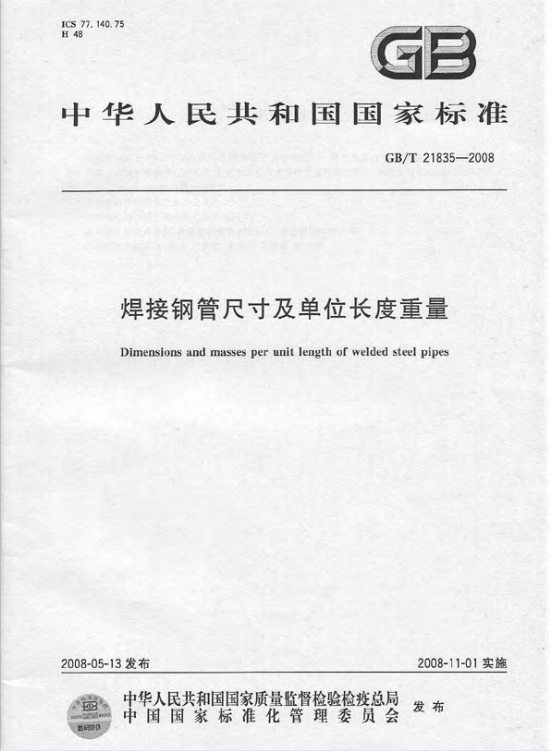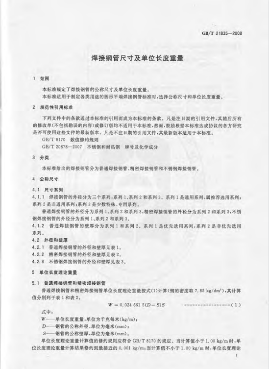 - 焊接鋼管尺寸及單位長度重量GB/T21835-2008 2022-04-22